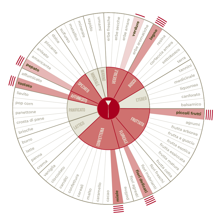 I sentori organolettici riportati sopra vogliono arricchire l'esperienza di assaggio, offrendo un semplice spunto per avventurarsi all'ascolto del proprio sentire. Per la predisposizione di queste note, abbiamo usato un'acqua a basso residuo fisso e a ph leggermente acido; usare parametri diversi può far variare l'estrazione e di conseguenza le percezioni organolettiche.