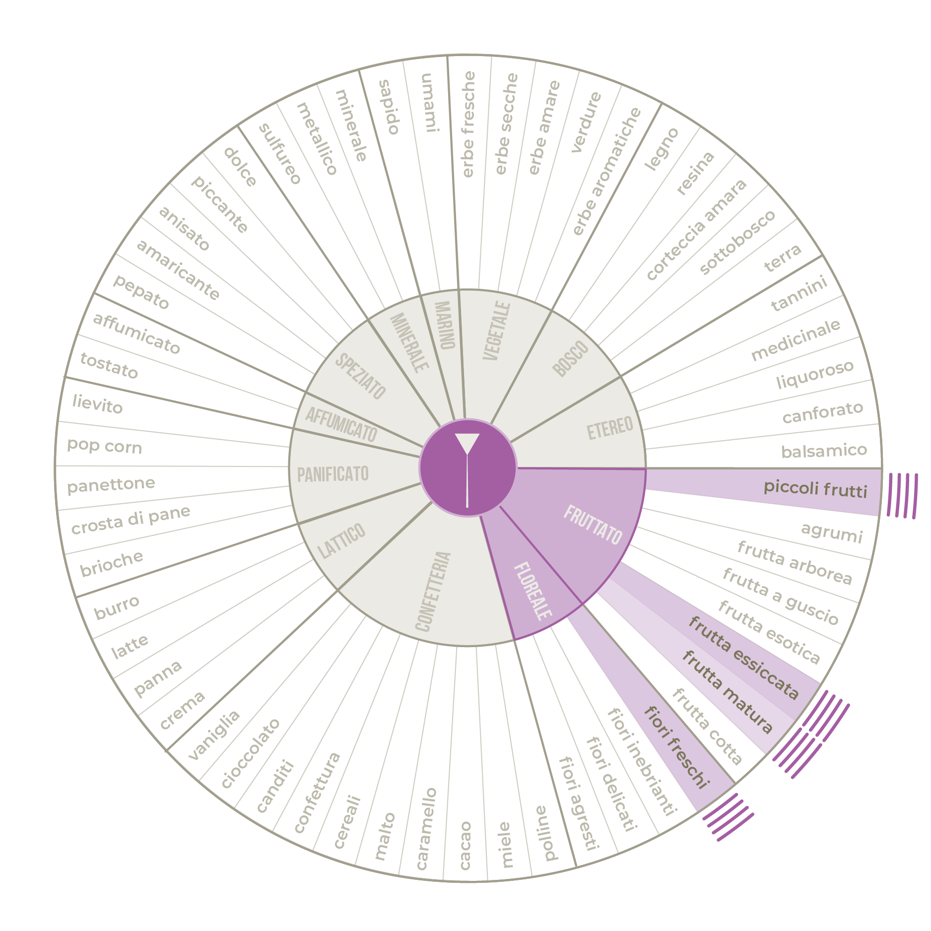 I sentori organolettici riportati sopra vogliono arricchire l'esperienza di assaggio, offrendo un semplice spunto per avventurarsi all'ascolto del proprio sentire. Per la predisposizione di queste note, abbiamo usato un'acqua a basso residuo fisso e a ph leggermente acido; usare parametri diversi può far variare l'estrazione e di conseguenza le percezioni organolettiche.